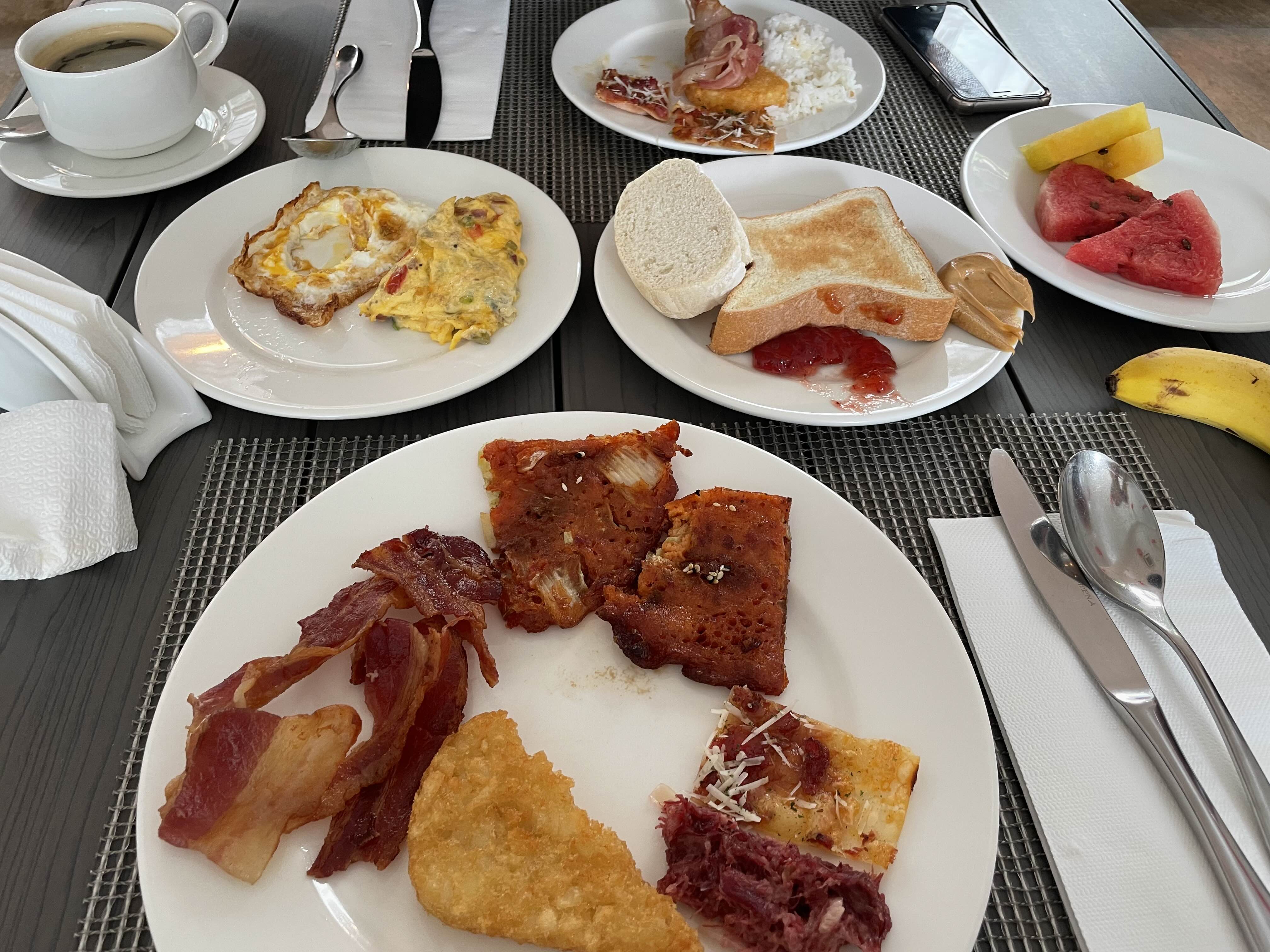 샐러드부터 베이컨, 해쉬브라운, 갈릭라이스, 필리핀 전통음식부터 열대과일.